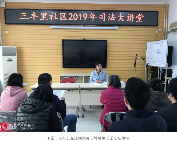 3月28日、4月3日,京师公益法律服务与调解中心王东红律师,分别来到三丰里社区和吉庆里社区,为两个社区的居民以"房子的继承与过户"为主题,开展了以案释法的宣传活动。