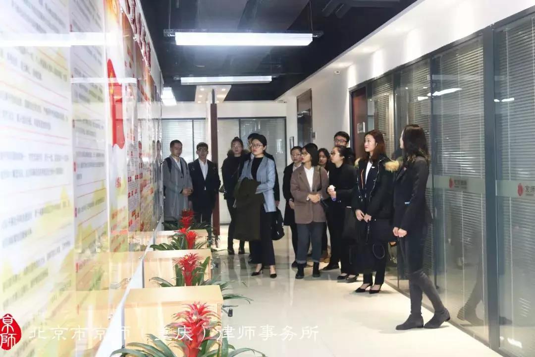 会前,行政主管杨晓娜带领学生们参观了我所咖啡文化洽谈区、多功能会议室、主任办公室、律师学院、开放性办公区域,介绍了现目前京师(重庆)律师事务所相应的合作单位及企业,并展示了京师的各专业领域专家、教授及资深律师等。