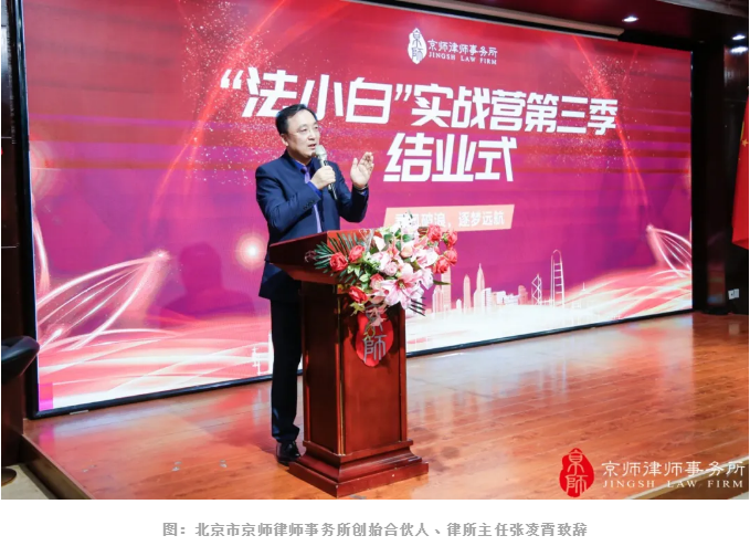 北京市京师律师事务所创始合伙人、律所主任张凌霄对“法小白”们寄予厚望,嘱托学员们要捍卫法律的尊严,并在最后送出自己的祝福。