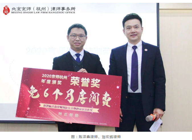 陈佳律师为篮球协会和桌游协会颁发了奖励,高度赞扬了过去一年中他们的工作。京师杭州主任刘宏辉律师肯定了陈泽鑫律师在“京师杯”中的优异表现,并为其颁发了奖励。