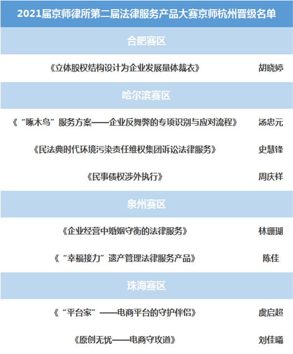 2021京师律所第二届法律服务产品大赛决赛在即!希望京师杭州能在此次大赛中取得亮眼成绩!我们拭目以待!