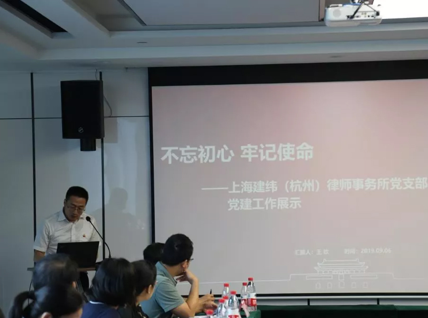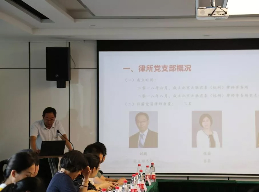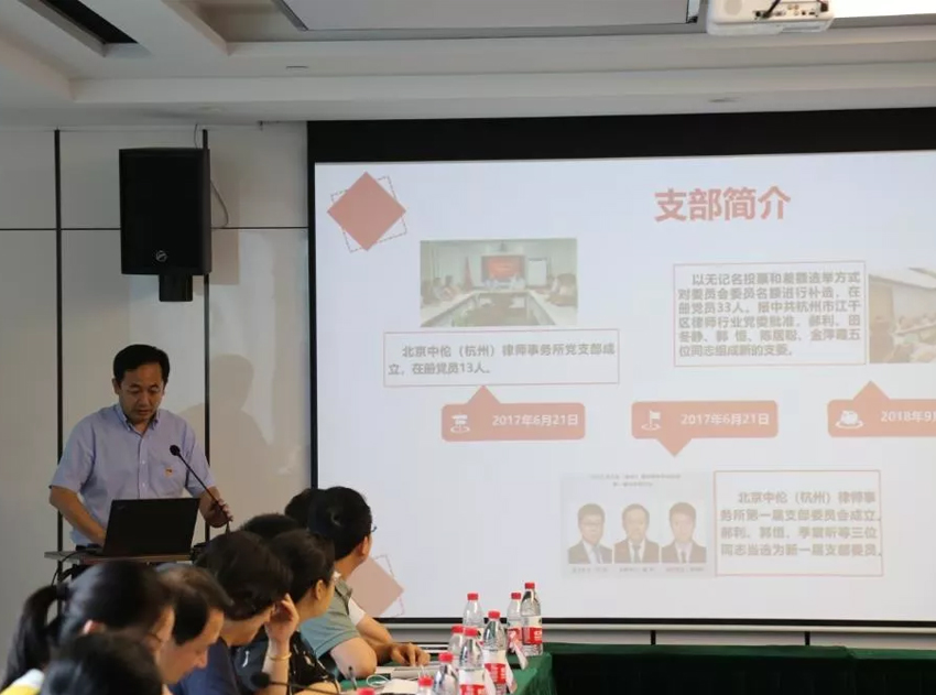 北京中伦(杭州)、上海建纬(杭州)、北京京师(杭州)、浙江铎伦、浙江颂杭、北京天驰君泰(杭州)等6家律所党支部代表,分别进行了打擂比武。